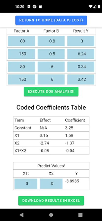 5. Calculate 2 level 2 factor Design of Experiments results.