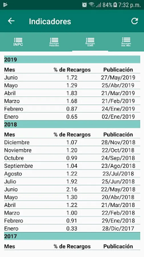 This App will help you to perform the calculations of the Update and the Surcharges of the contributions owed to the tax authorities, when they are not made within the terms established in the fiscal provisions.