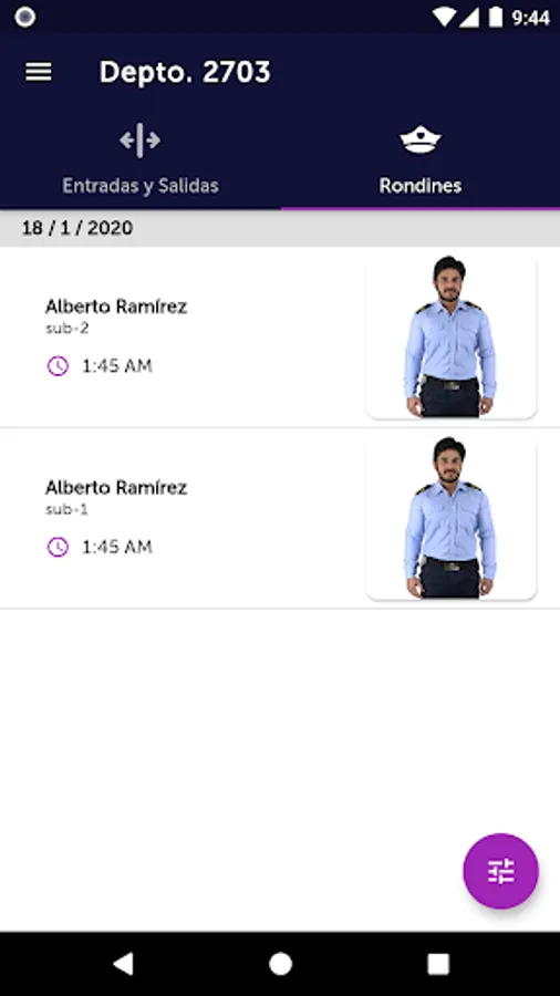 You can consult historical records of the accesses as well as a report of the rondines generated by the contracted security personnel.