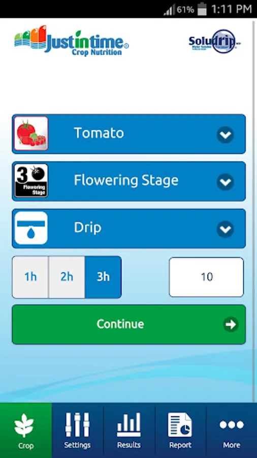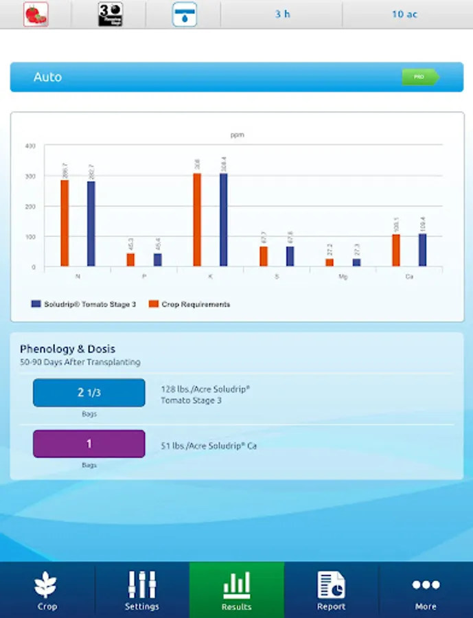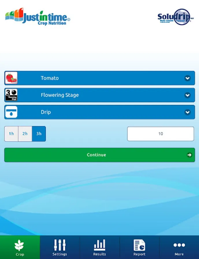 Feed your crops as a professional. The Just in time™ Plant Nutrient Calculator is a user-friendly software tool developed to support the application of Soludrip™ water-soluble fertilizers; it will calculate the right dose of a nutrient solution, according to the phenological stage, as part of a complete crop-nutrition program for an intensive farm operation.It doesn’t require WI-FI and is therefore 100% portable and easy to use on your own farm for wise and fast decision-making. Become an expert in plant nutrition by following the instructions of this powerful tool to determine and provide the precise amount of nutrients required by your crop at every application throughout its life cycle.