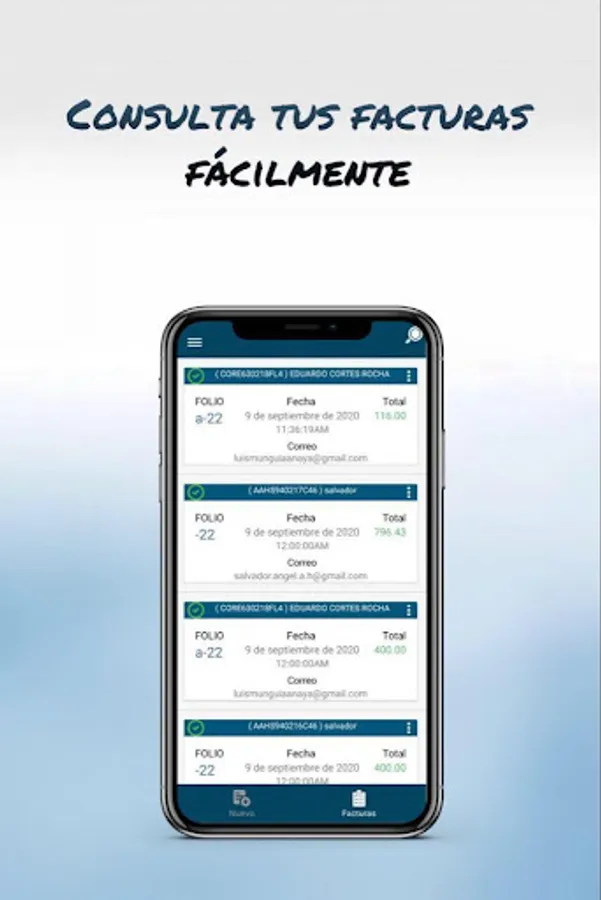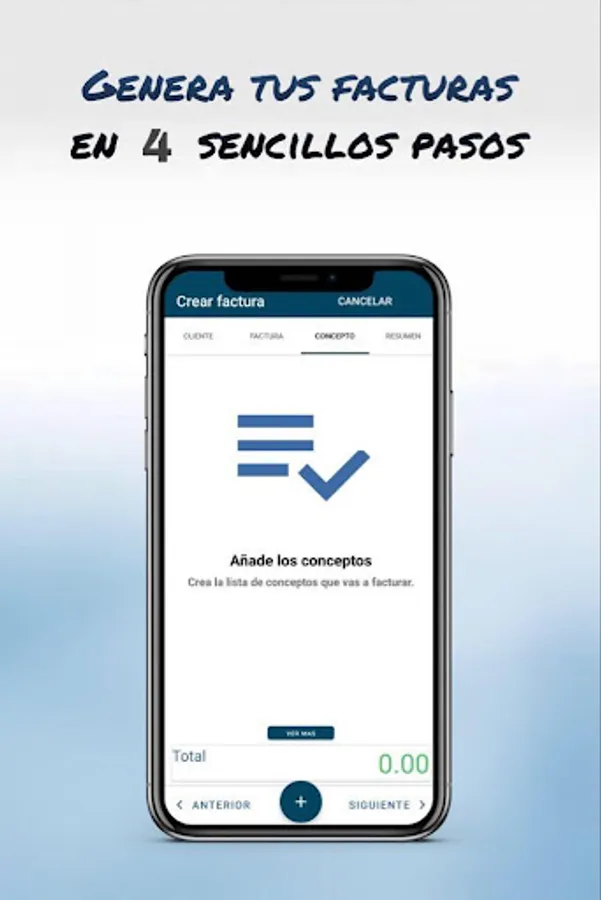 It allows the creation and consultation of invoices in a simple and fast way. Documents are created through a series of four easy steps: