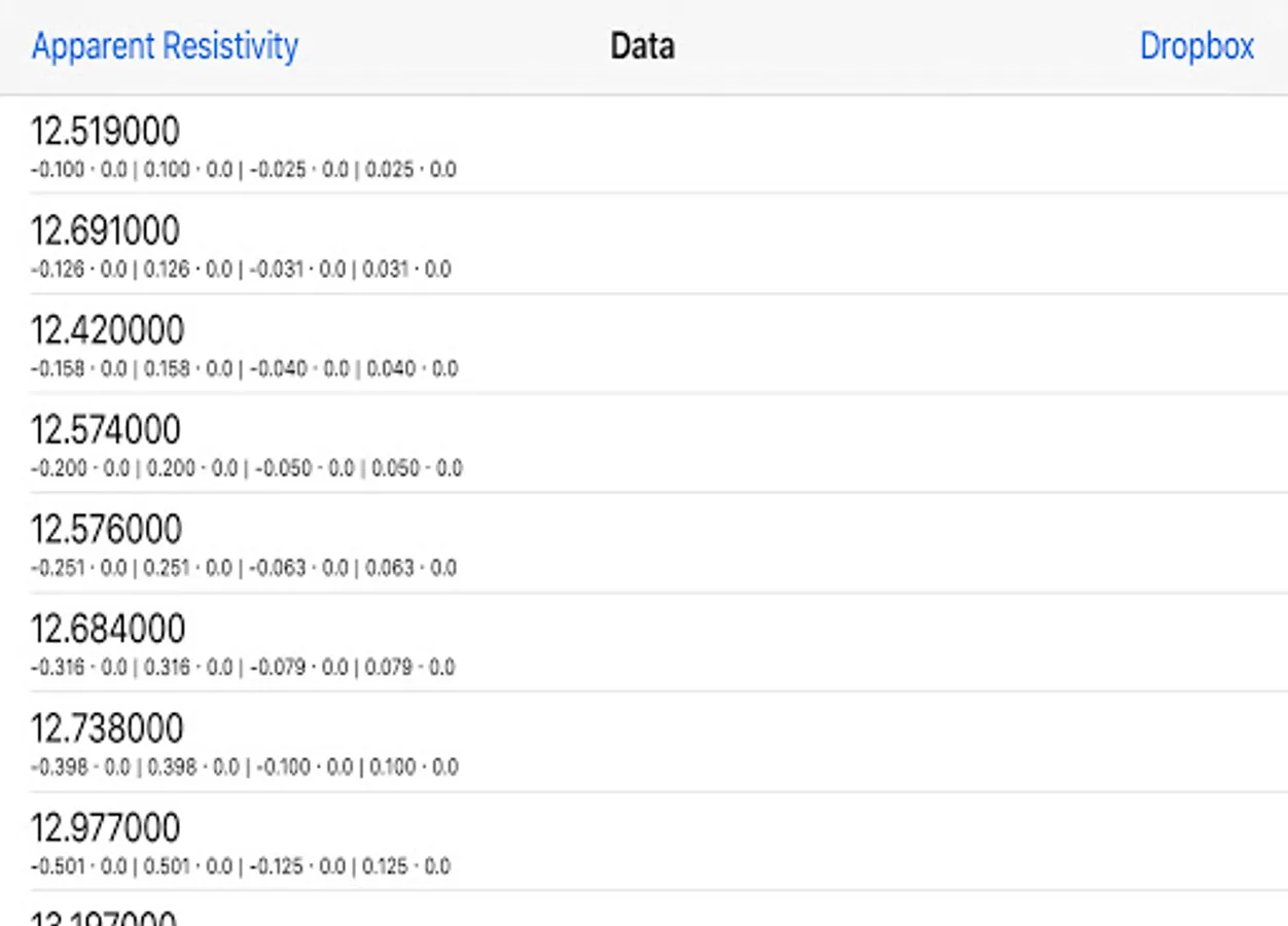 You can add any number of observations in your input file and must store it in your Dropbox. This App will connect with your Dropbox and let you select an input file in order to read the apparent resistivity observations.