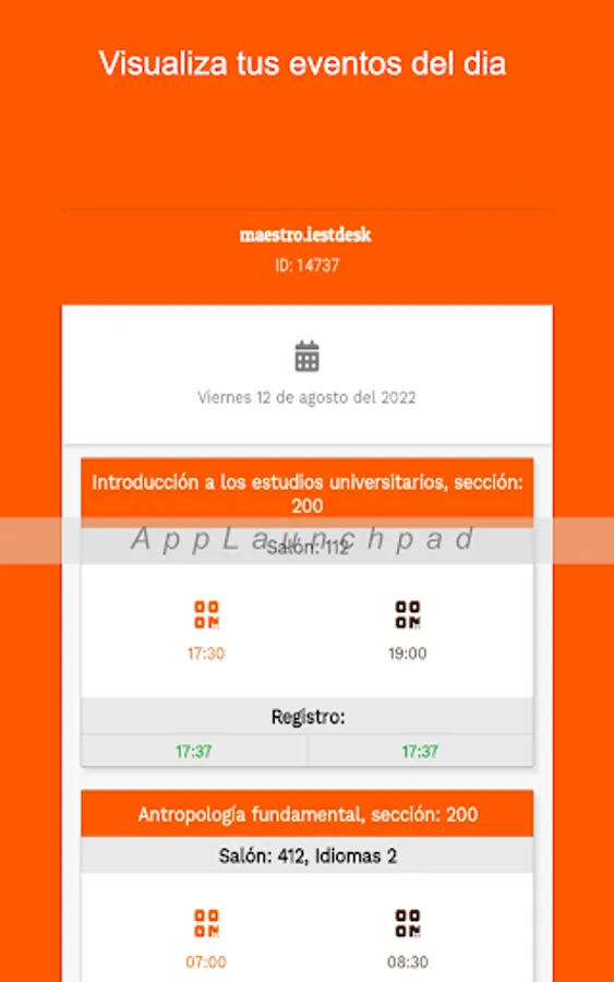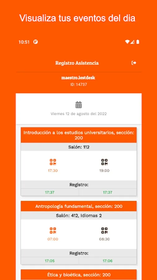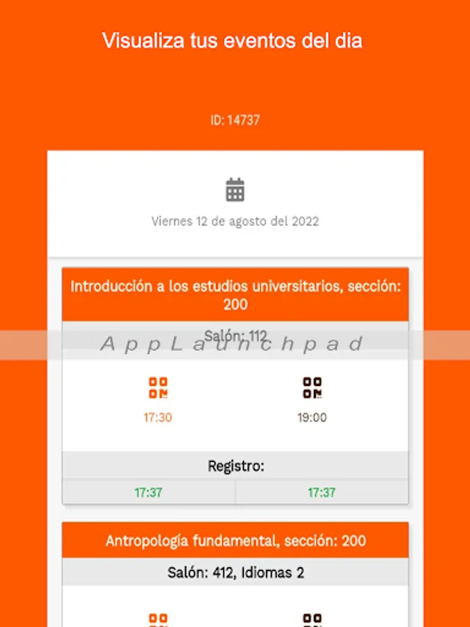 *View your events of the day and register your entry to the event using a QR code scanned at the event location.