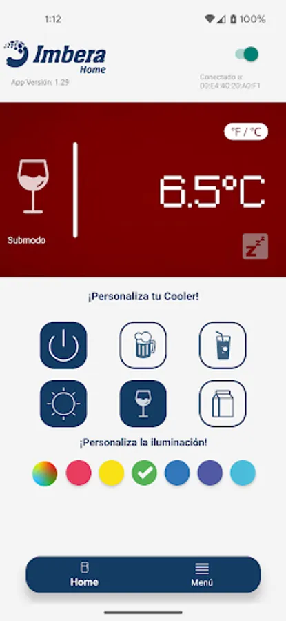 With ImberaCooler you can change the settings of your fridge from the color to the type of cooling with Bluetooth Low Energy technology