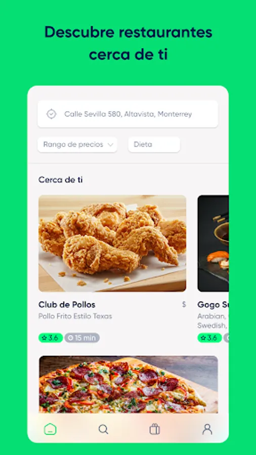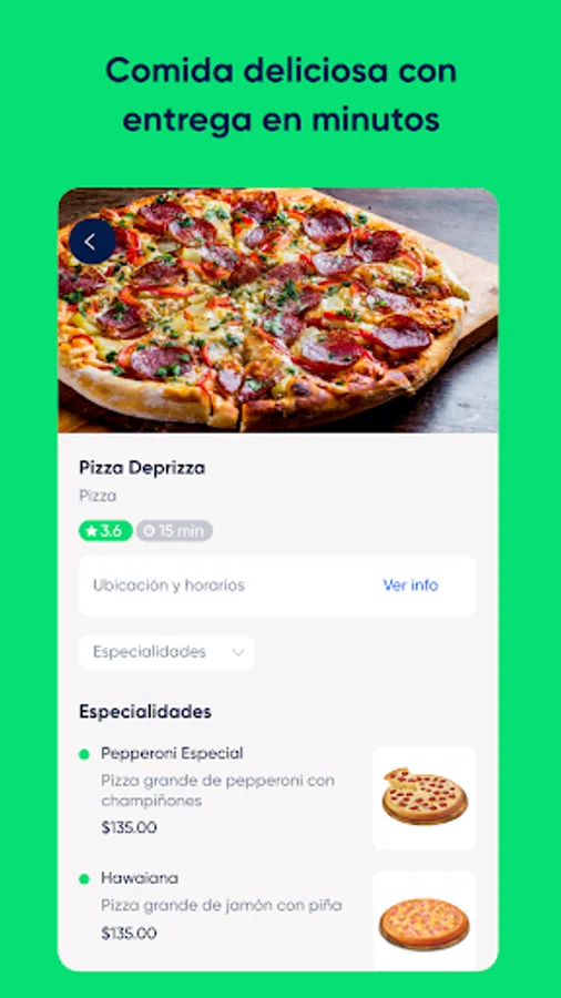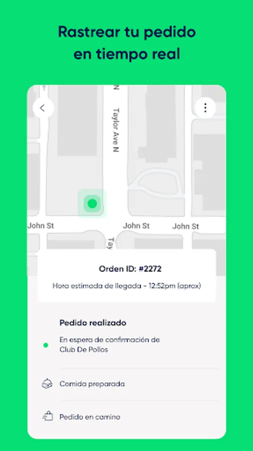 Cuando hagas tu pedido, verás la dirección, la hora estimada de entrega, el precio total con los impuestos y el costo de envío incluidos.