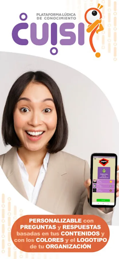 • You will be able to customize colors and include your logo, set levels and points to reach, rounds of questions, number of games per day, response time for challenges, among many more options, so that the experience becomes more personal and exciting.