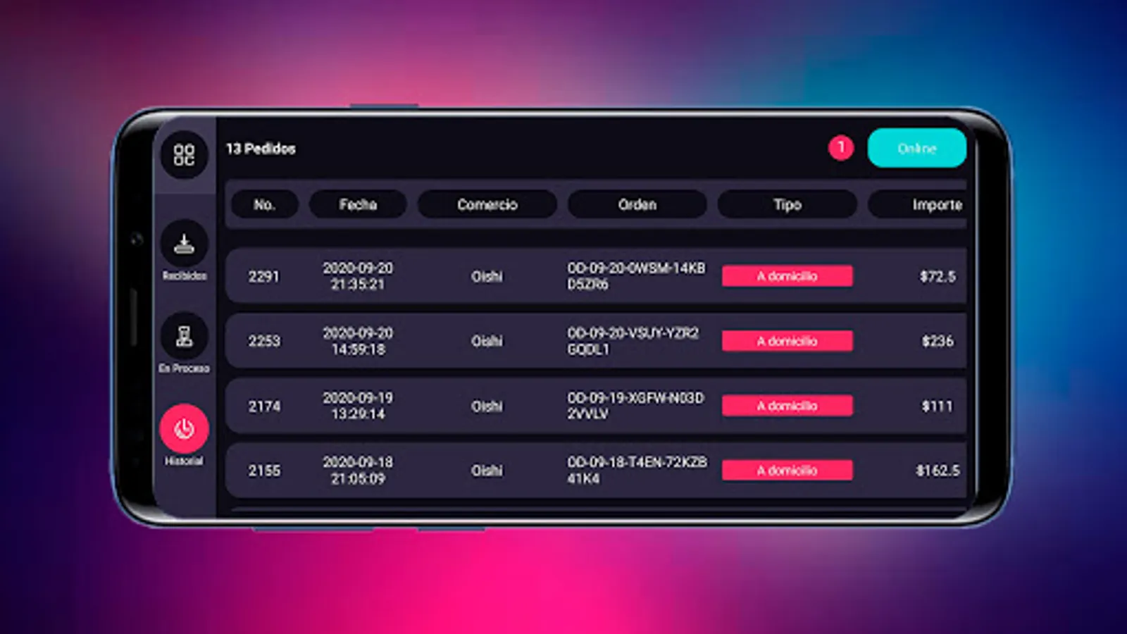 Administration of orders from businesses affiliated with Fliver