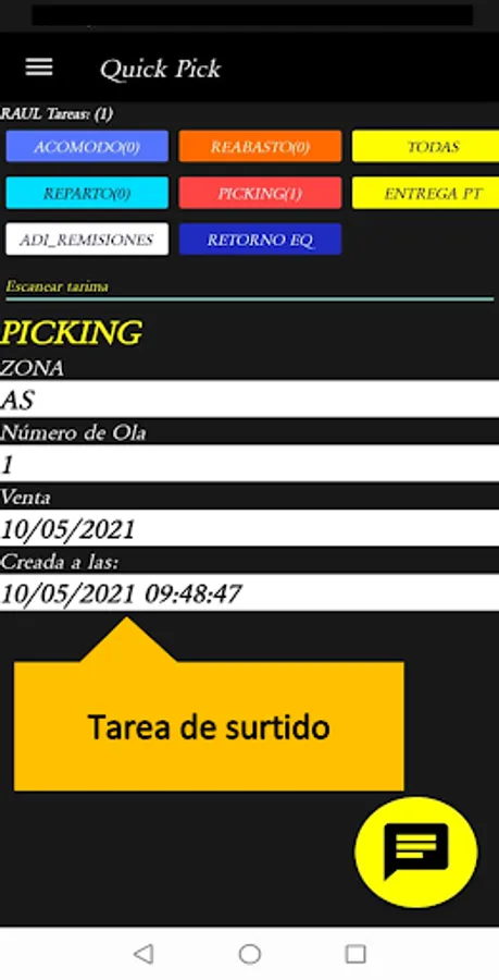 QuickPick GB is a business application developed to measure and exclusively for Grupo Bimbo users who can download it through the internal repository of business applications, this app works only on the internal network (it does not work on the Internet), it integrates functionalities of a WAREHOUSE MANAGEMENT SYSTEM and a LABOR MANAGEMENT for the control of the internal logistics processes of an office: (Receipt, Storage, Supply, Preparation of orders by waves, Dispatch)