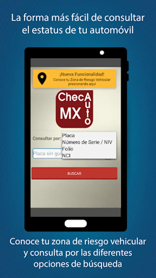 ChecAuto MX is a free application that allows you to easily check the status of a vehicle and visualize the risk zone in terms of vehicular theft.