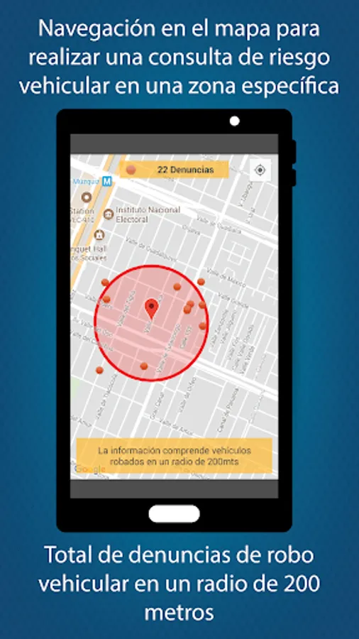 In addition, ChecAuto MX integrates new functionality with which you can see by the map, the crime rate of the area in which it is located, with a red dot marking the place where a vehicle theft was made; or if you prefer you can browse the map and select another area of your interest or you plan to visit, validate the crime rate in that area and have the opportunity to prevent the safety of your vehicle.