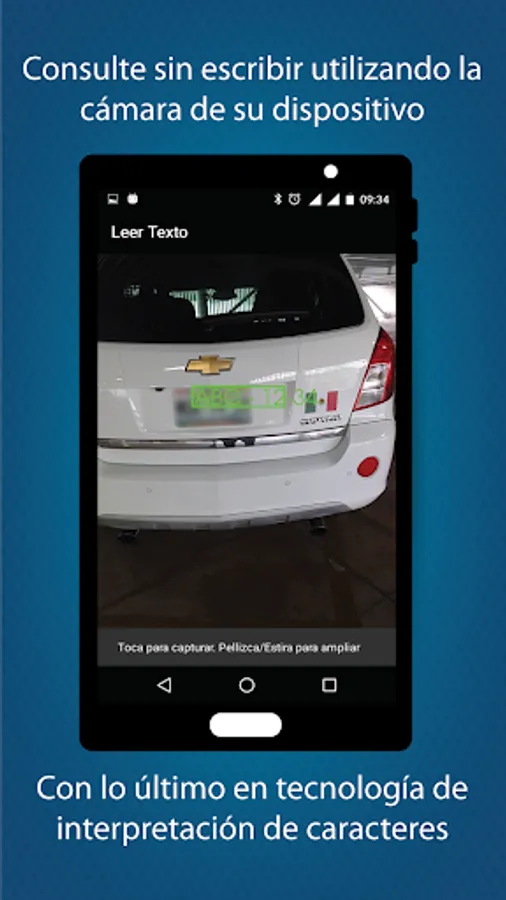 Contains technology character recognition (OCR) for reading the plate or serial number through the camera of your mobile device, so it should place your mobile device at a distance of 2 meters and pressure on read the number once it has been recognized.