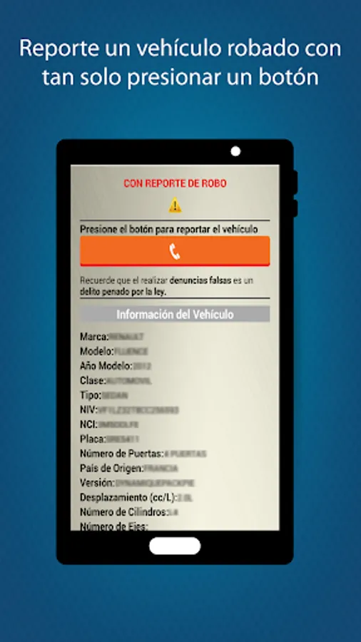 Through this application you can know whether or not the vehicle has been reported stolen, immediately.