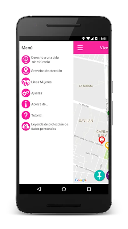 Personal use App designed to contribute to the safety of women and girls. It contains a complete set of functions; online map, emergency call 066, report the feeling of security, state and public space furniture and cases of harassment, information on women's rights.