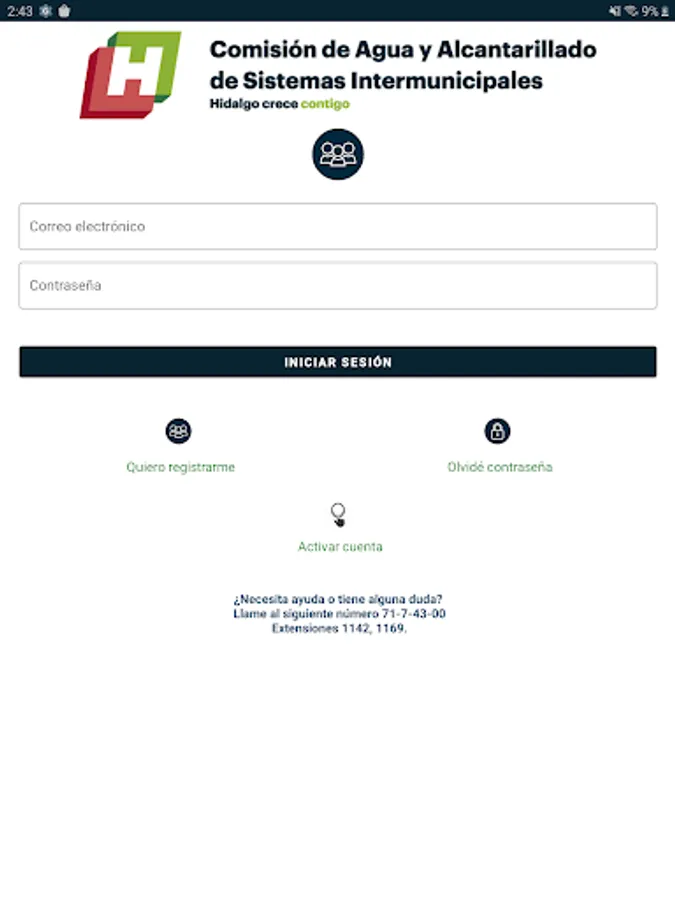 To access the application it is necessary to register and provide the data requested in the form, if you have already registered at https://servicioscaasim.hidalgo.gob.mx it is not necessary to register, just enter your username and password that You created and you will be able to access the application.