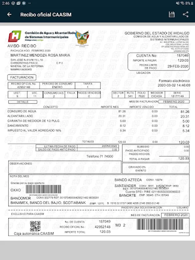 The Water and Sewage Commission of Intermunicipal Systems offers the “CAASIM” application as a tool for consulting information, managing accounts, making payments, locating branches, downloading invoices, viewing and downloading monthly receipts.