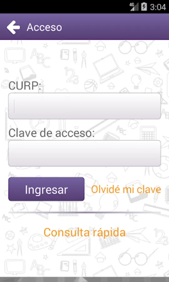 Use your access data (CURP and password) to enter or you can also scan the QR code printed on your application for pre-registration for quick reference.
