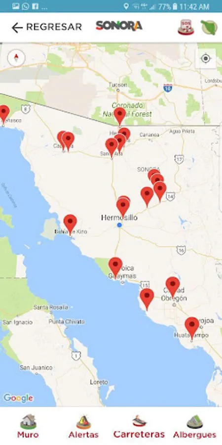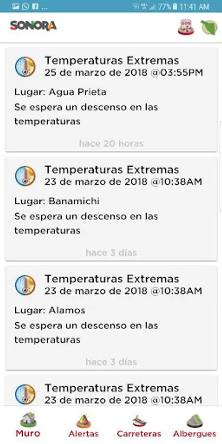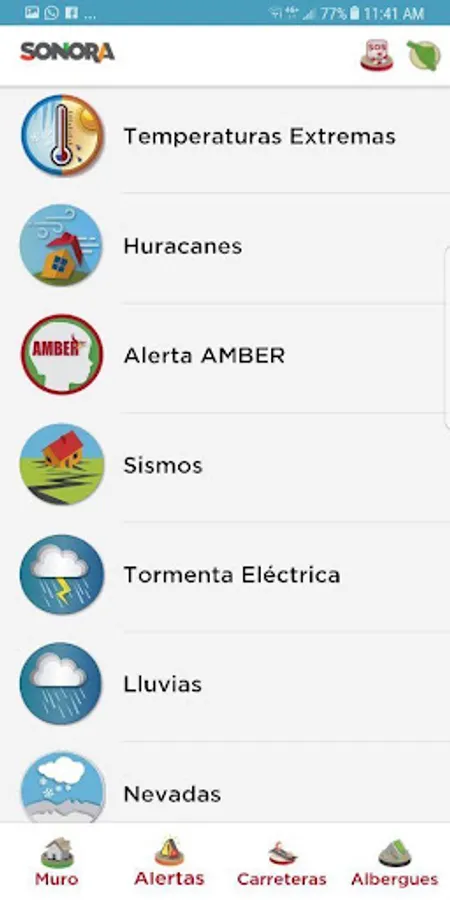 System using a mobile application that allows the user application to receive notifications of risk situations of the population of the State of Sonora, through the State Civil Protection Unit.