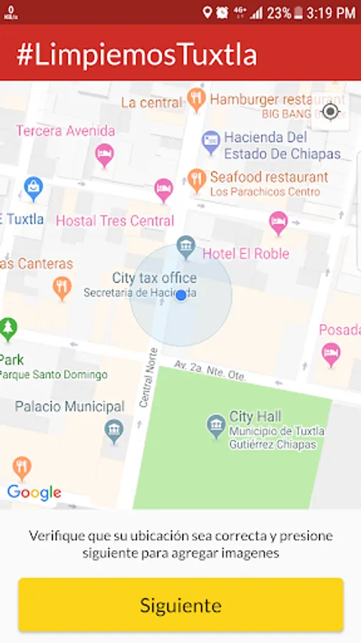 Application for the ecological campaign of Limpiemos Tuxtla, where the citizen can take and send photographs of the areas with a before and after.