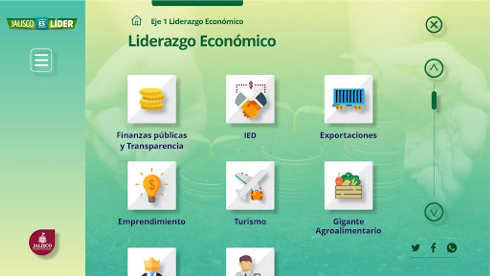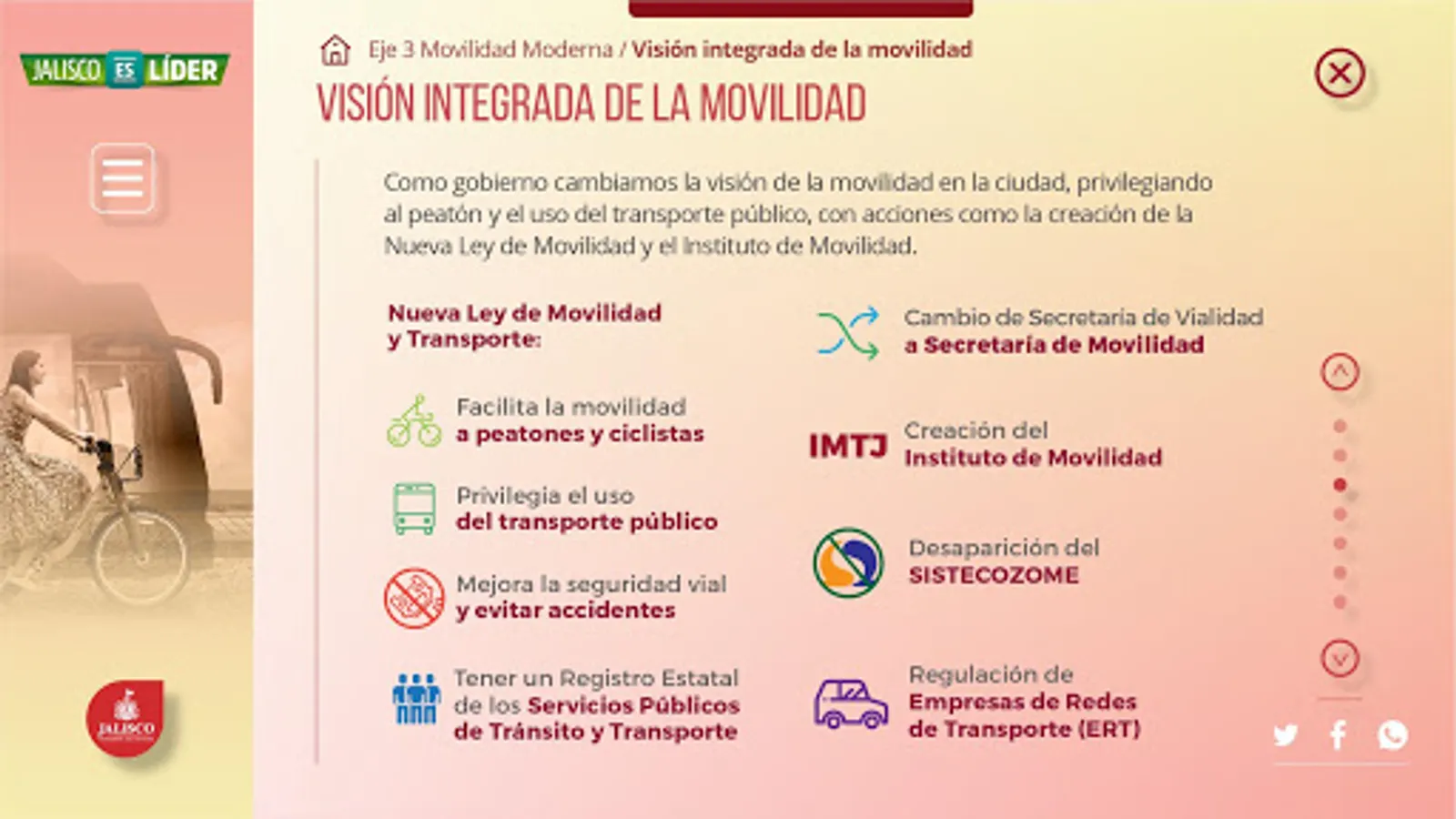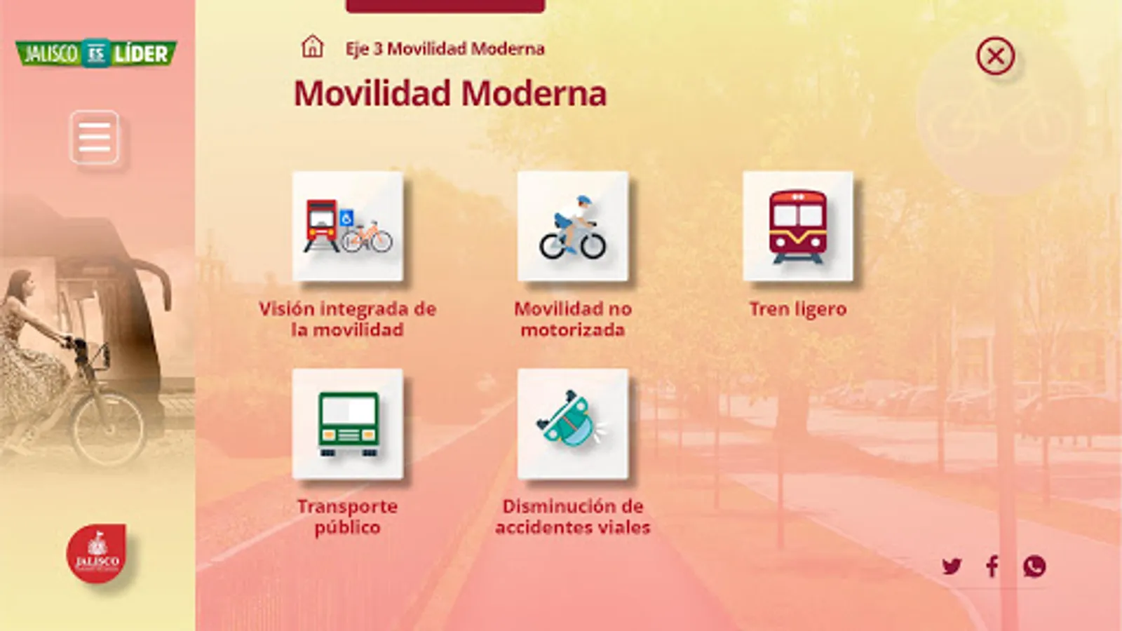 The official application "Jalisco is leader" shows information about the progress of the state of Jalisco, Mexico on mobility, economy and society.