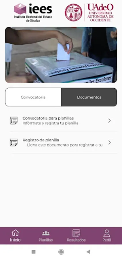 The Electoral Institute of the State of Sinaloa invites you to use the application with which you can monitor the election of the Student Society, and the forms; vote on the day of the School Electoral Day, and see the results.
