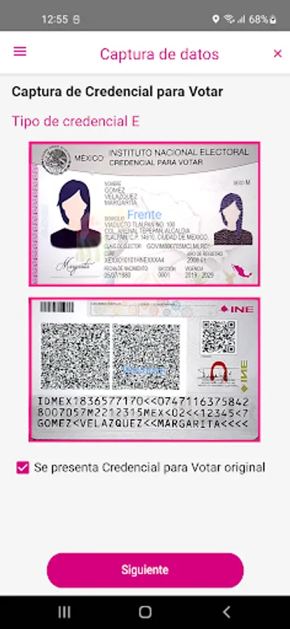 Citizen Support - INE, is a computer system developed by the National Electoral Institute (INE), which allows, through the capture of the front and back of the Credential to Vote with Photography (CPV), to extract the information contained in it, to then capture the living photograph of the citizen and his signature. The information collected through the application and sent to the INE, will be used to exercise the powers of verification of the registration situation, in accordance with electoral regulations.