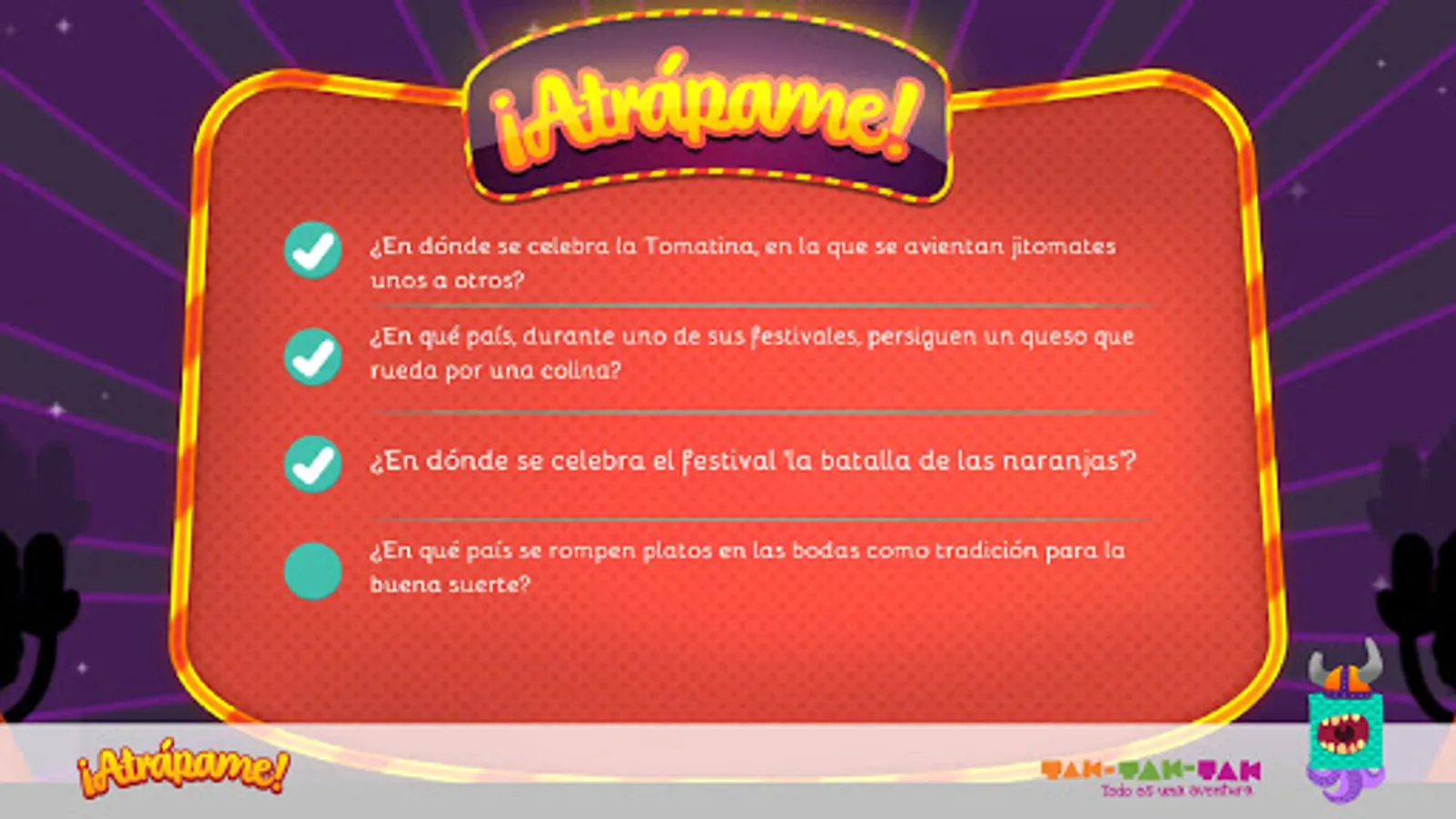 Catch me! was funded with the support of Nacional Monte de Piedad and was developed by Caldera Estudios, Básica Asesores Educativos and Inoma.