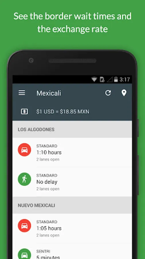 Bordify shows the border wait times in all the USA ports of entry given by the U.S. Customs and Border Protection, for passenger vehicles and pedestrians.