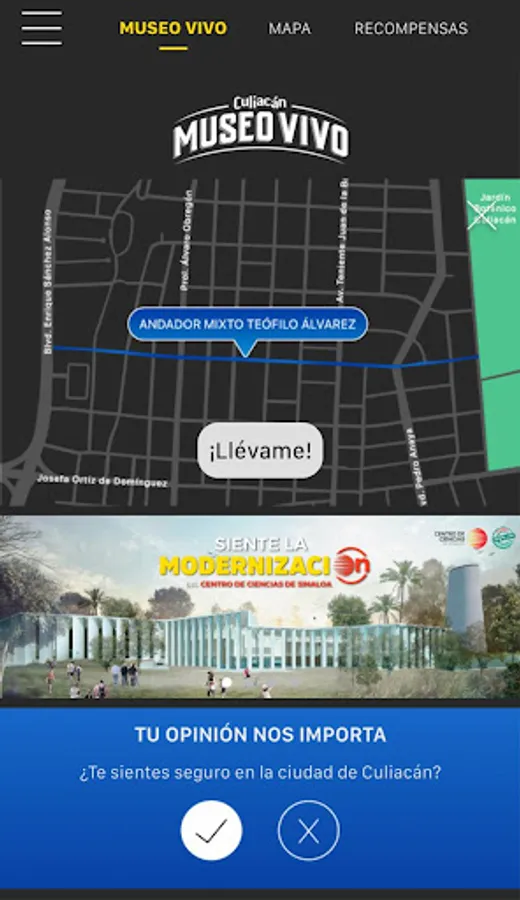 We take advantage of the new technologies and the already installed potential of Culiacán and Sinaloa to create “Culiacán Museo Vivo”, an APP that generates solutions to help and access to the population related to quality of life, connectivity, socially responsible architecture, shared value, urban planning, mobility, economic and social development, innovation, social fabric, health, entertainment, sustainability, knowledge societies, culture and citizen participation.