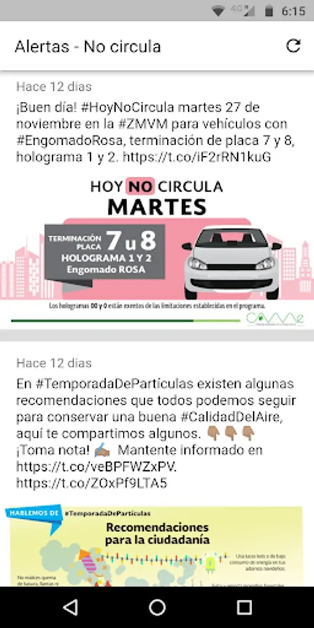 The Environmental Commission of the Megalopolis is the only body that publishes sudden changes in the Hoy No Circula program.