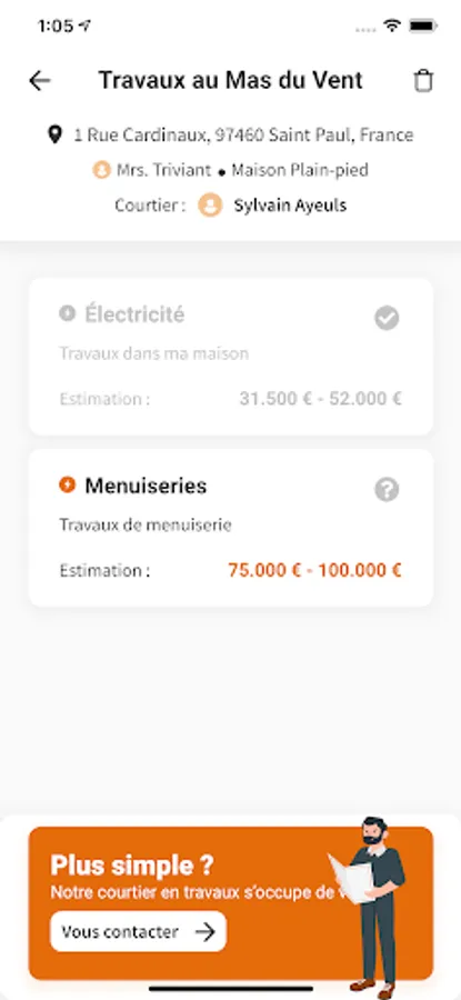 - The broker presents to you, free of charge and without obligation, the quotes of the craftsmen he has selected for your project.