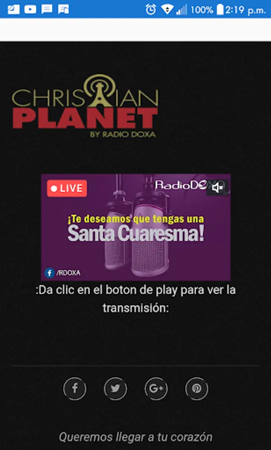 With this app, you can view the transmissions of our site: https://www.christianplanet.org.mx/ download the app so you can see and hear us live.