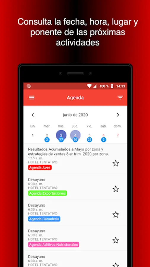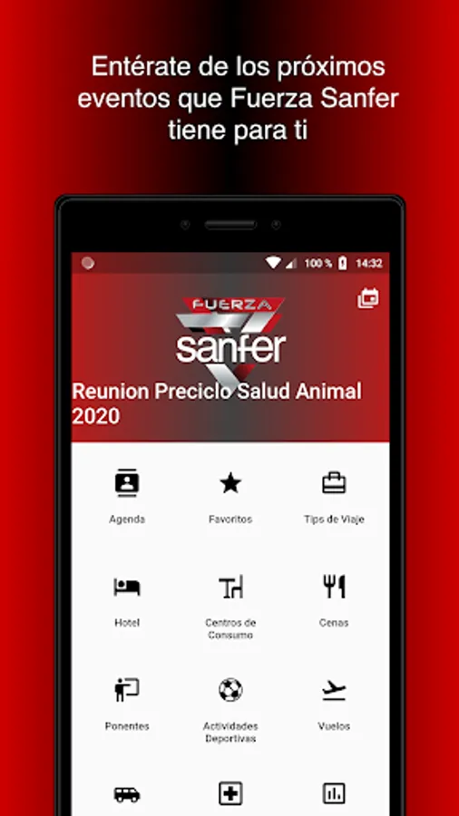 Fuerza Sanfer App allows you to check all the upcoming events to which you have been invited and receive notifications of activities that are about to start. Find out the date, time and place where these events will be.