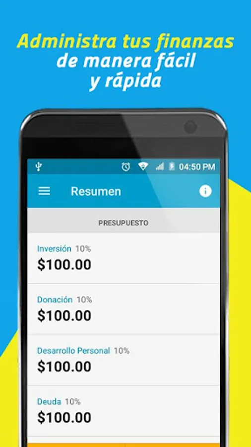 Decide what percentage of your income destinarás to: Basic Needs, Personal Development, Investment, Philanthropy, Debt, Dreams, Fun, Emergencies.