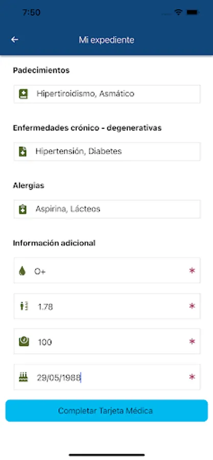 It is a notification that is sent to trusted contacts with the following clinical information: age, weight, blood type, if the user has a chronic degenerative disease, allergies, any current clinical treatment and requires immediate medical attention.
