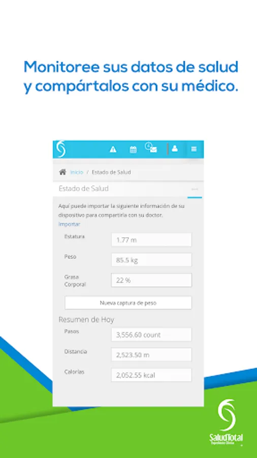 SaludTotal is the easiest and most accessible medical records management software. Install the application on your Android device and maintain records of their patients synchronized on your computer, tablet and phone.