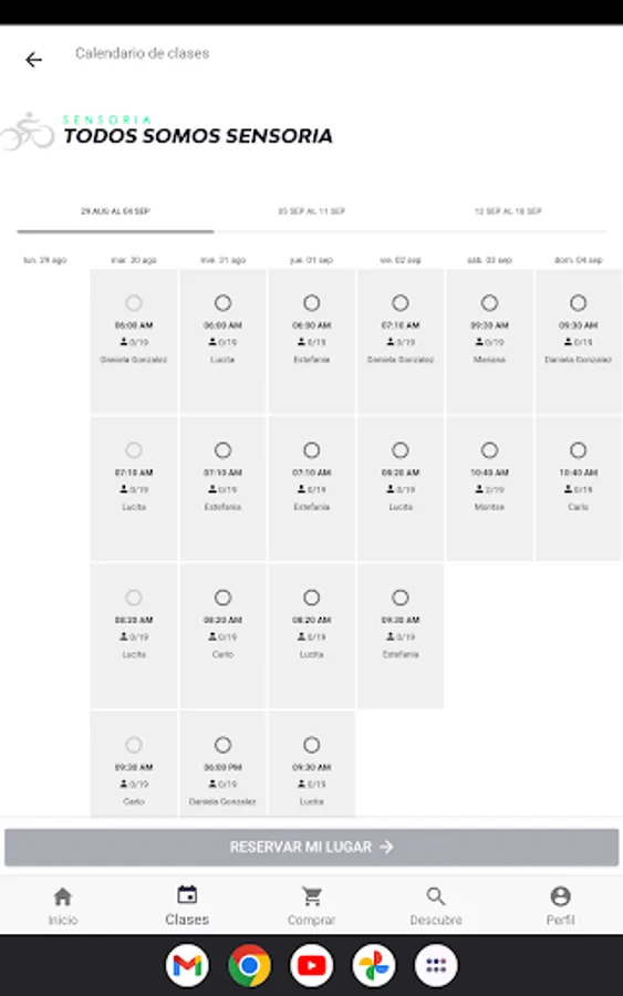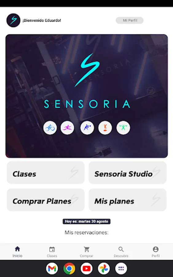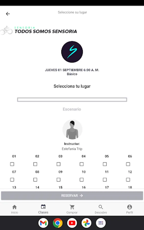 Sign in within the application to be able to navigate, it is necessary for users to register in order to book studio classes.