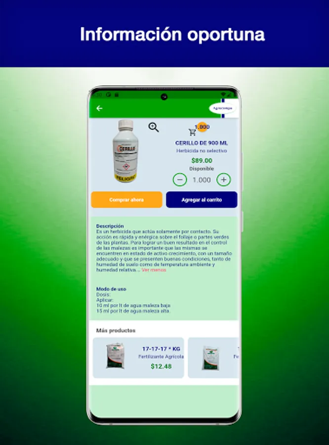 This application is designed with the convenience of customers in mind, innovating new ways to make purchases more easily. Dedicated to the agricultural and veterinary sector in the application you can find: herbicides, fertilizers, veterinary drugs, accessories for pets, hardware, urban insecticides, ticks, dewormers, food and vaccines for all types of animals, beekeeping equipment, sprinklers and their spare parts, seeds to sow etc.