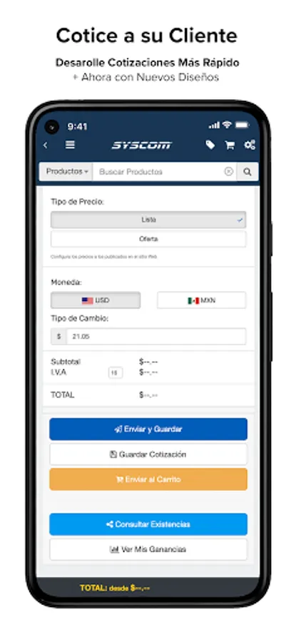 The cotizador allows Quotes SYSCOM products and products added by you.