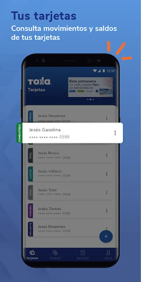 Do you have a Toka card? Download our application on your mobile phone and register your Pantry, Fuel, Expenses, Total cards, to check your balance and movements.