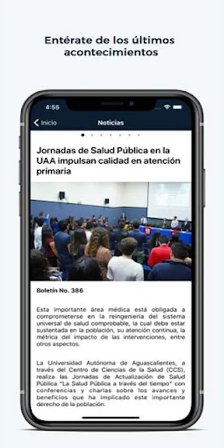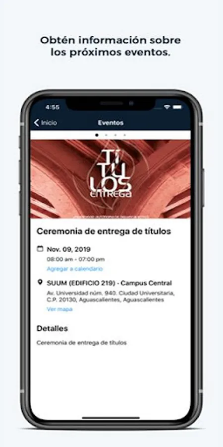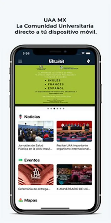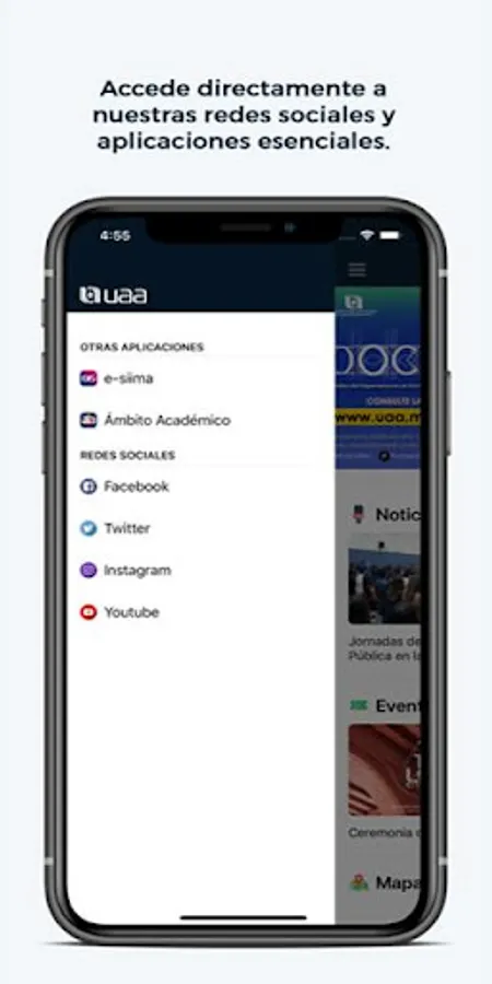UAA MX is the mobile application made available by the Autonomous University of Aguascalientes to members of the university community and the public in general, where you can check news, relevant events, location maps and navigation to places within our facilities, as well as access to Esiima, Academic Field and official information in social networks of the Institution.