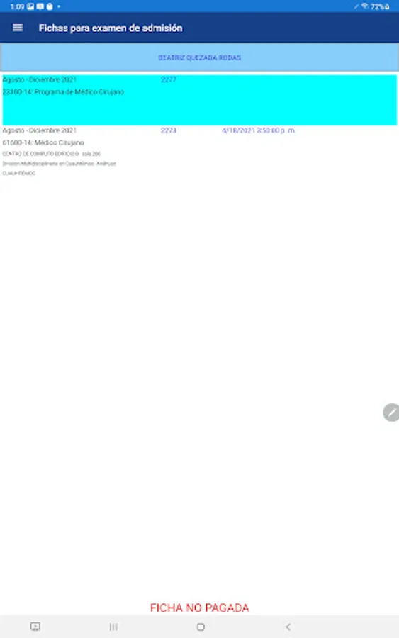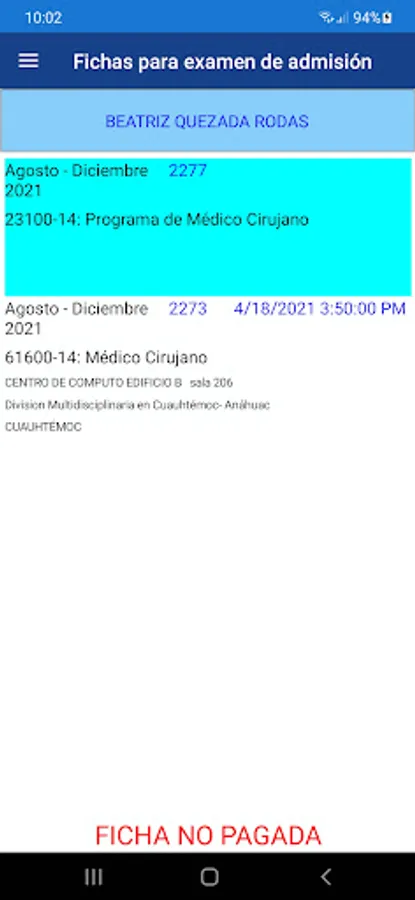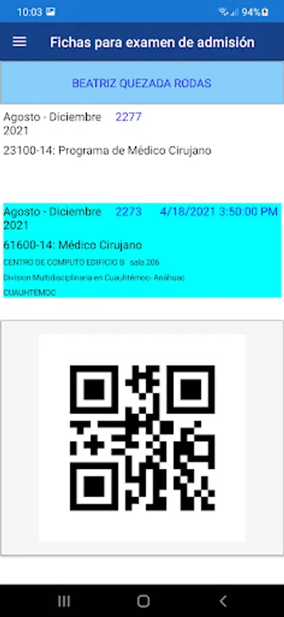 - The requested files with the information of the status, location and time where your exam will be applied.