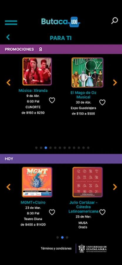 OFFICIAL application of the UdeG where you can find a personalized catalog based on your tastes and interests, access promotions, find out the details of the most important events that CULTURE brings to you, don't miss out on unique opportunities and enjoy in the best venues cultural aspects of the city that the University of Guadalajara has for you.