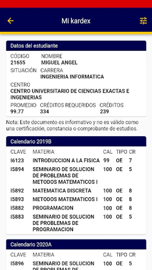 OFFICIAL application of the University of Guadalajara, designed to provide members of the University Network with access to the different modules of the School SIIAU where the information most commonly requested at the beginning and end of the school cycles is housed.