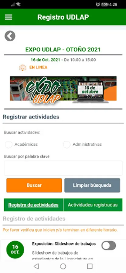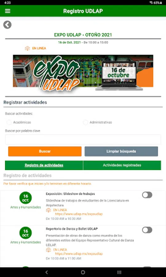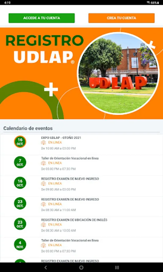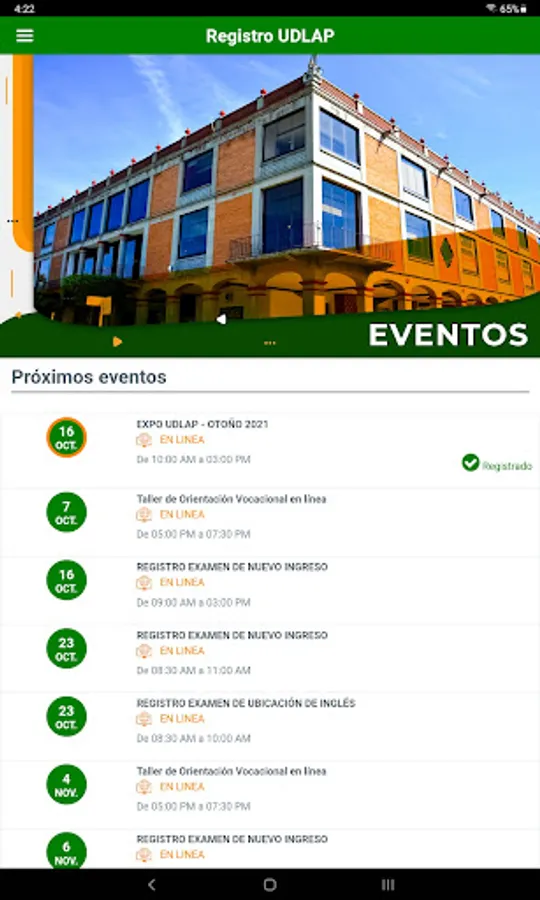 Get to know UDLAP through events such as ExpoUDLAP !! and many other events that are in your community and online. Register to take your New Income exam. Register for workshops in the events that include them, monitor your events and receive alerts when they are about to start.