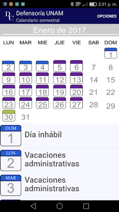 Calendario escolar UNAM 2018 Screenshots