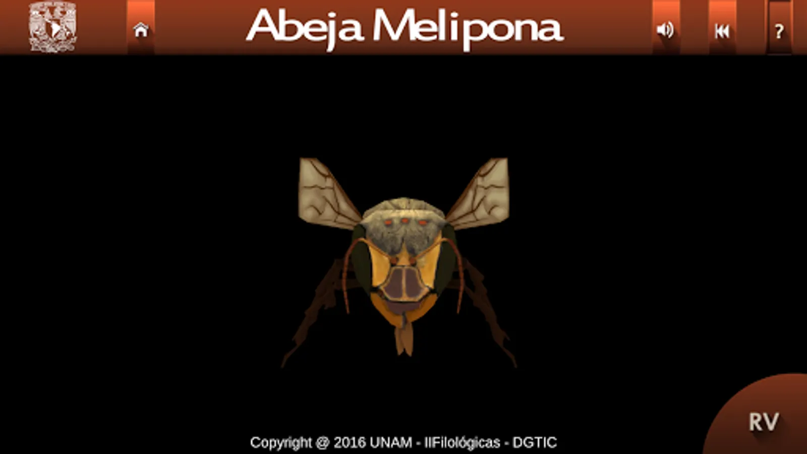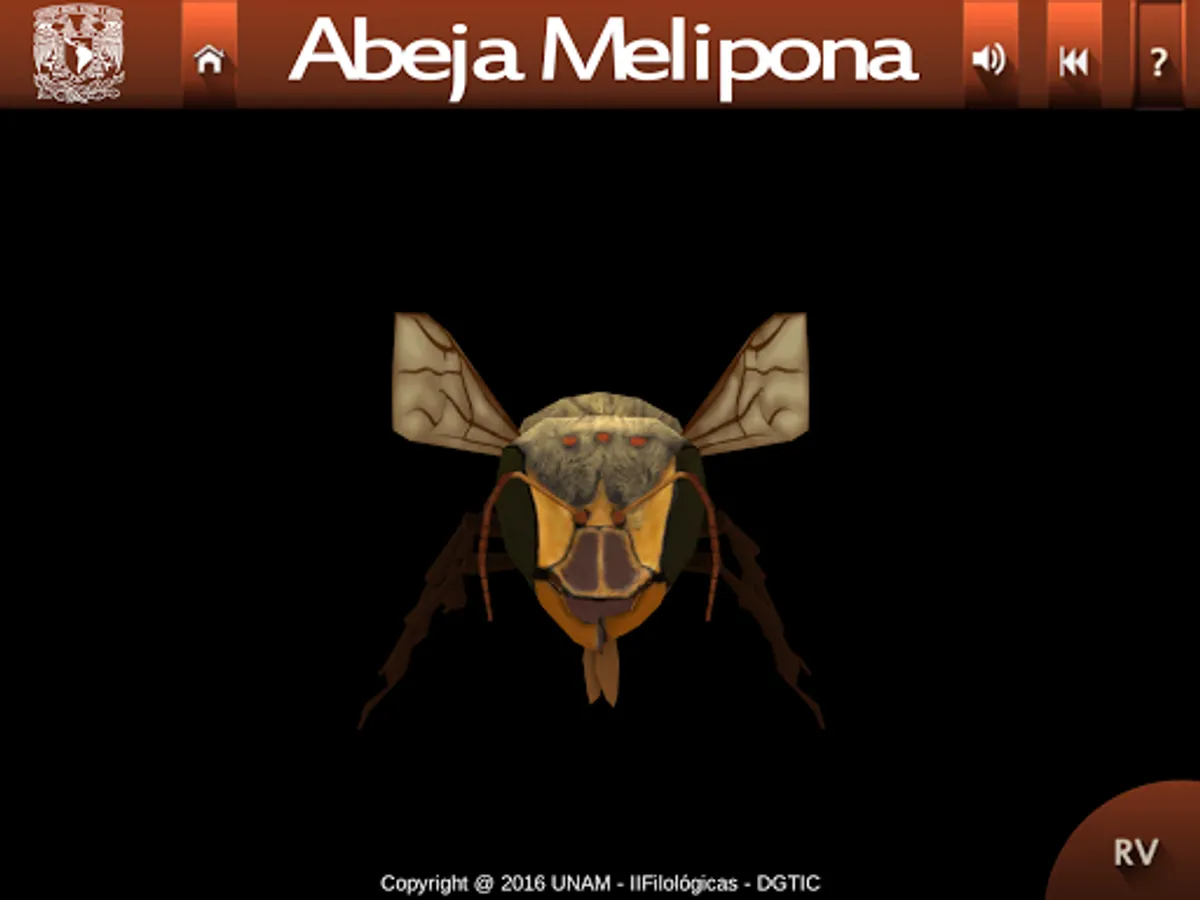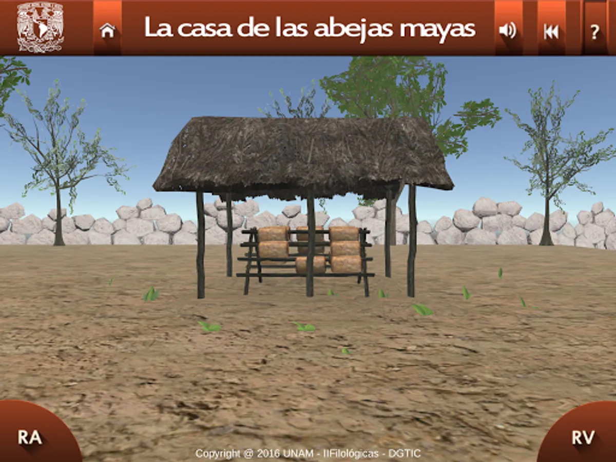 The "Mayan Bees" application includes two modes: virtual reality that provides the option of knowing in detail beecheii Melipona bees, called in Yucatec Maya as Xunaan Kab, their hive and its products. In addition, you can harvest honey from Melipona beecheii, virtually, with the technique that the Maya have practiced since pre-Hispanic times. Augmented reality allows the user to enter a colony of these bees and travel within, tour the nursery area and the storage area where bees deposit the nectar into honey and store transformed the collected pollen.