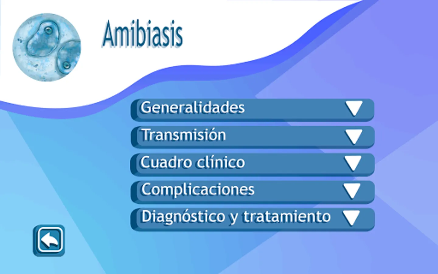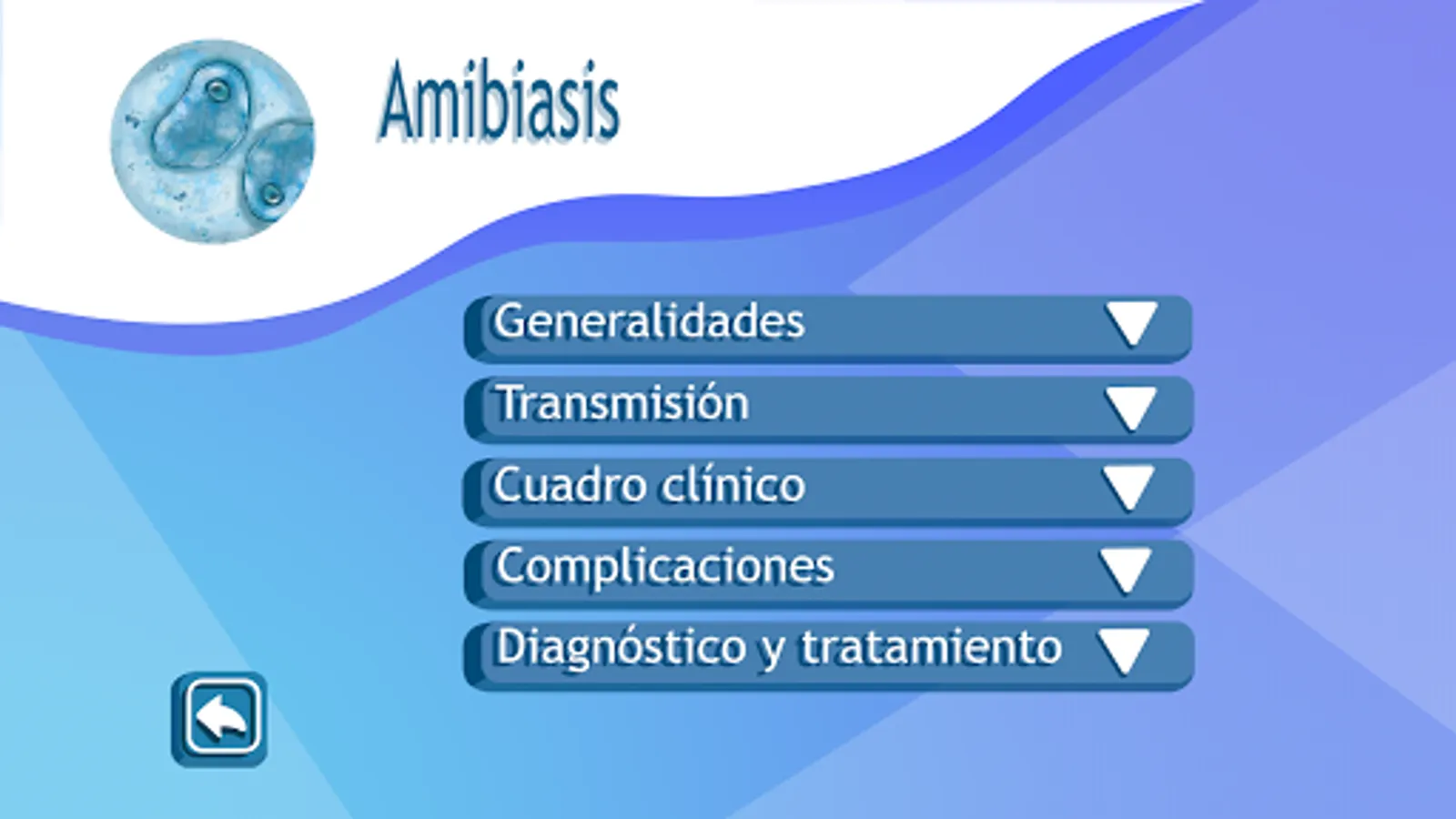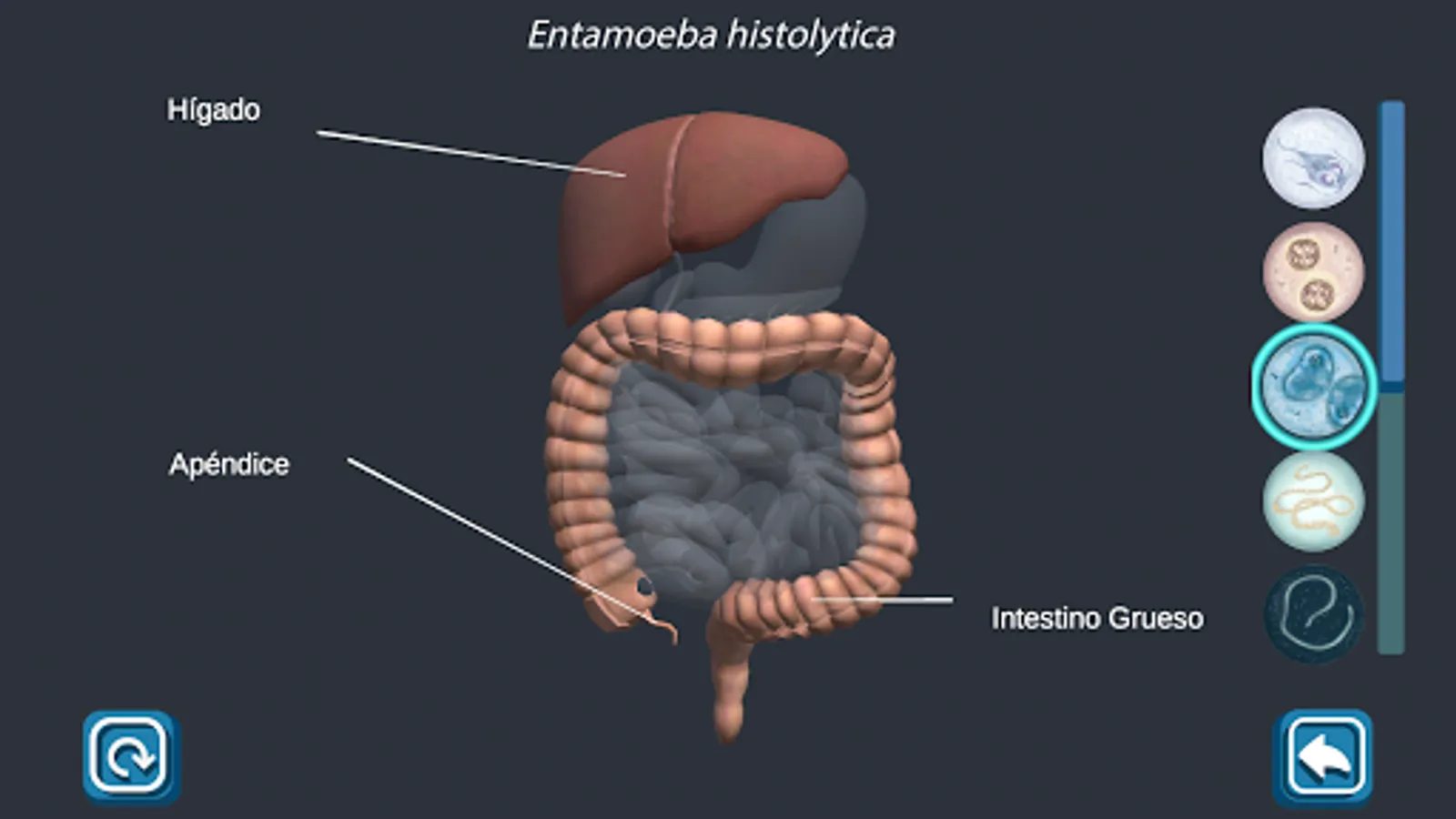 Enteropara-site is an application that contains multimedia didactic material for the study of parasitoses of medical importance that affect the small and large intestine that are included in the thematic unit of Parasitology of the subject of Microbiology and Parasitology of the second year of the Surgeon of the Faculty of Medicine of the UNAM. It includes information regarding the generalities of parasitosis, transmission mechanisms, clinical symptoms, diagnosis and treatment. This app should only be used as a study tool to reinforce the knowledge acquired in class since the information is only a summary of the chair of each parasitosis. The topics included in the app are: Giardiasis, Intestinal Coccidiosis, Amebiasis, Taeniasis, Hymenolepiasis, Ascariasis, Necatoriasis, Strongyloidosis, Trichuriasis and Enterobiasis. The user must understand that the content presented in this application is only informative and designed for medical students, so a doctor should be consulted when any of these conditions is suffered.