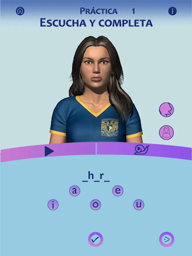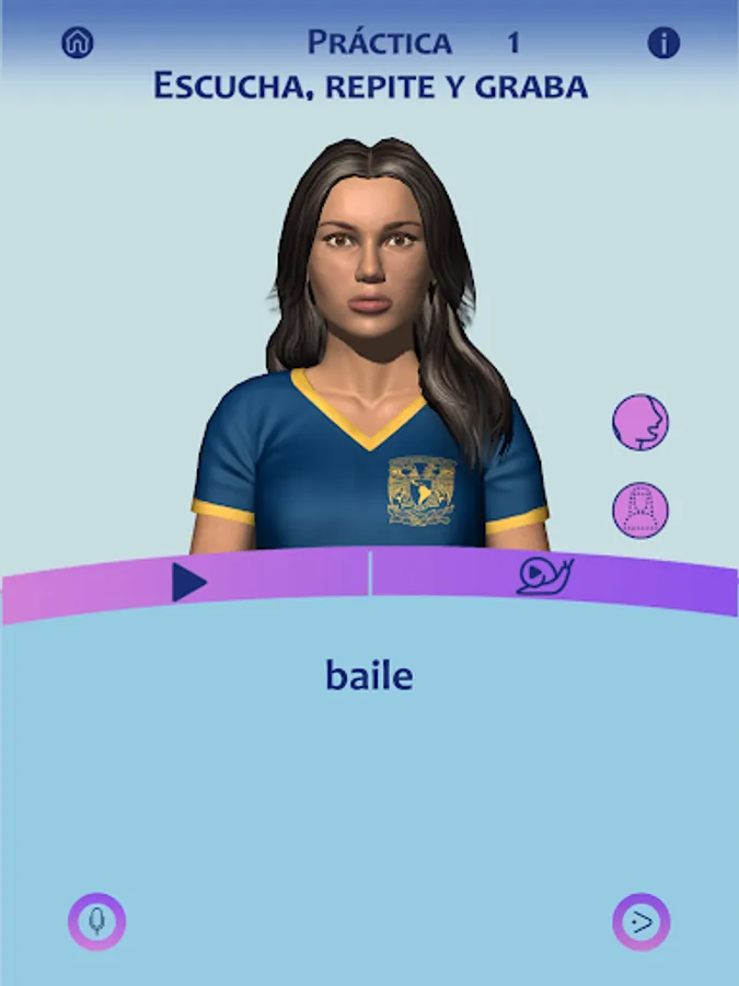 With Sarahí you can visualize the movement of the organs involved in speech, which will help you practice and improve your pronunciation in Spanish.