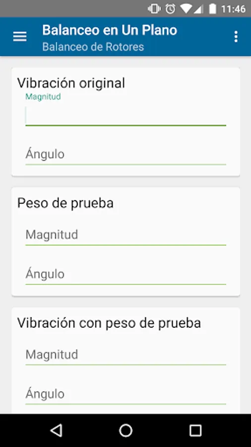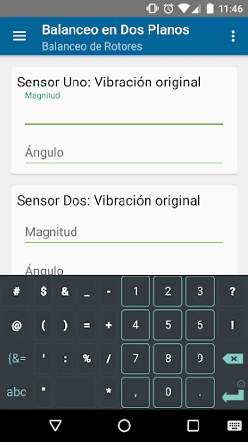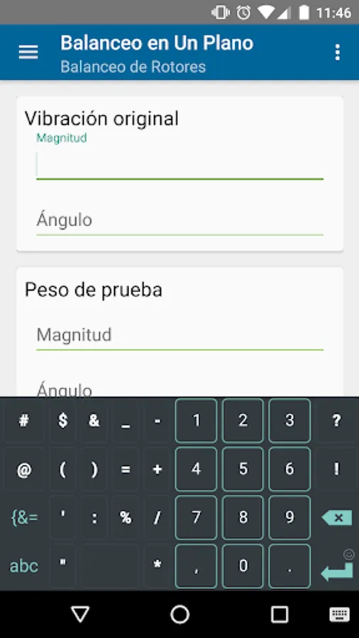 The objective of the application is to support the practice of rigid rotors balancing single and dual plane to support learning the fundamentals of mechanical vibrations and also to be a user friendly tool for the technician or engineer who perform rolling field.