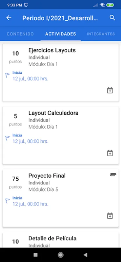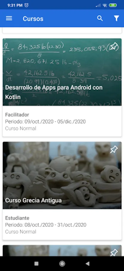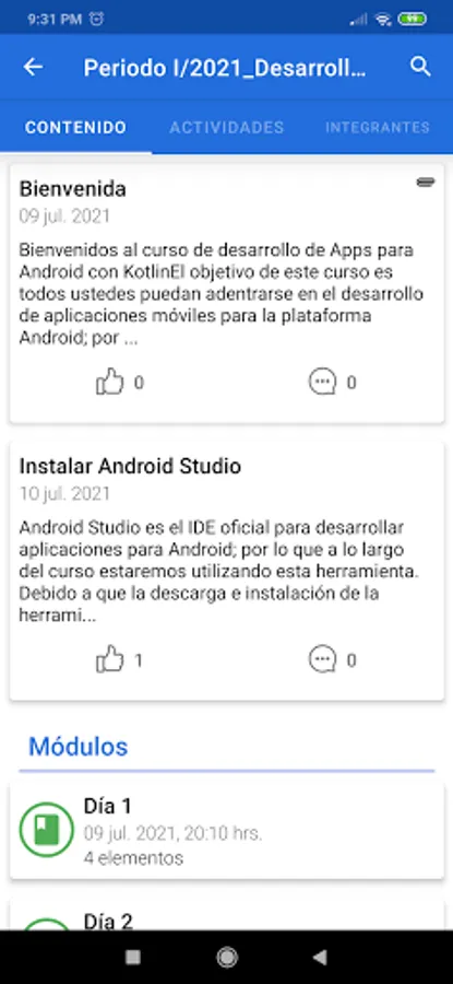 From here you will be able to consult and download the content and activities of the courses in which you participate; as well as consult and contact the members of each course.